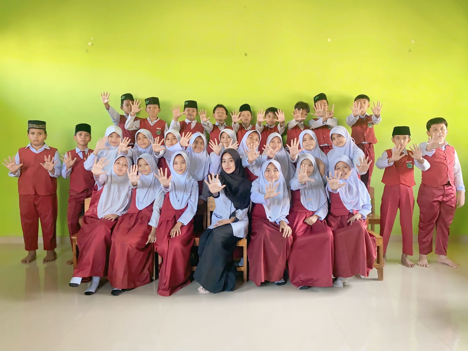 Foto ini merupakan momen kebersamaan siswa-siswi Kelas 5 bersama dengan Wali Kelas Dari masing masing kelas, sebelum melangkah naik ke Kelas 6. Dalam foto tampak keceriaan, kekompakan, dan ukhuwah yang terjalin erat di tengah-tengah siswa, siswi, dan guru.